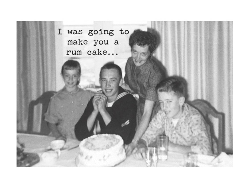 Outside: I was going to make you a rum cake... Inside: now I'm drunk and it's just a cake! Happy Birthday!