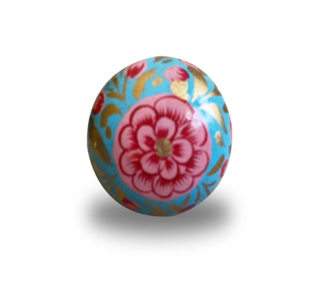 Teal & Pink Floral Knob